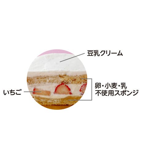 卵・小麦・乳不使用。苺と豆乳のクリームケーキ。