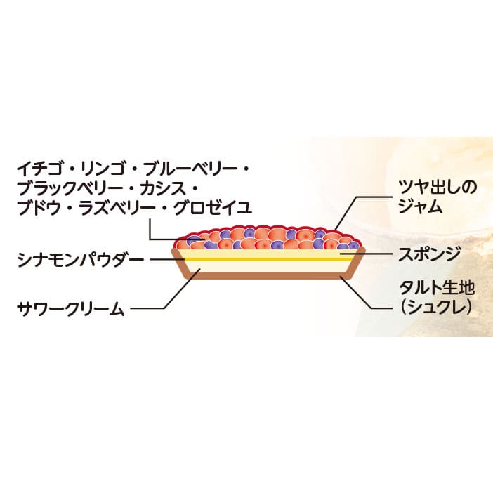 甘酸っぱいフルーツをたっぷりと飾った華やかなタルトです。