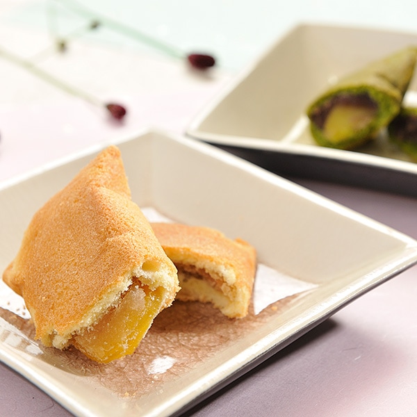 契約養鶏場で生まれた卵をふんだんに使用したカステラ風生地の中に特製あんと国産栗の甘露煮を贅沢に包み込んだホイル焼きのお菓子です。