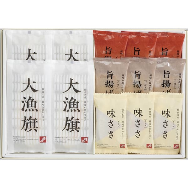 内容・容量 : 大漁旗×4、味ささ(チーズ)×3、旨揚げ(さつま・ごぼう)×各3