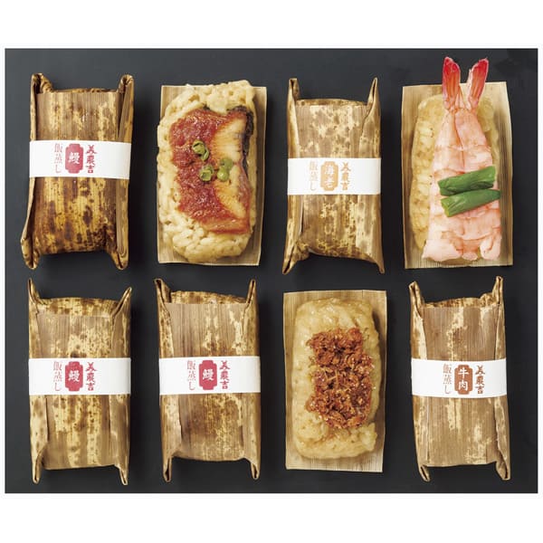 内容・容量 : 鰻の飯蒸し50g×4、牛肉の飯蒸し・海老の飯蒸し 各50g×2