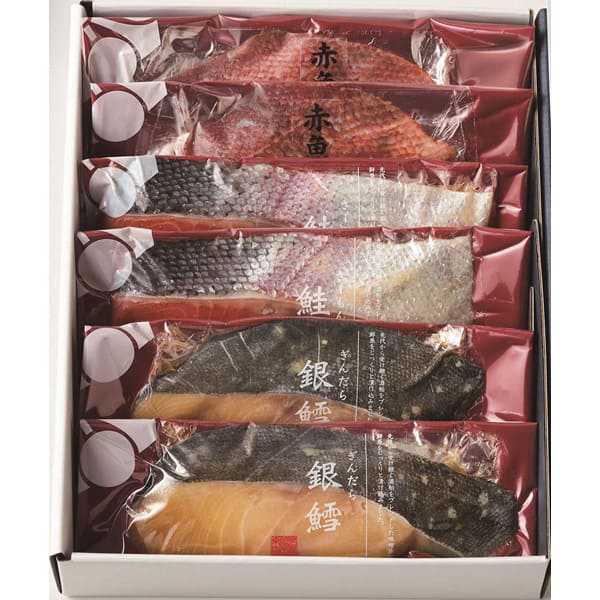 内容・容量 : 西京漬けギンダラ×2・西京漬けサーモン×2・西京漬け赤魚×2 計6切れ