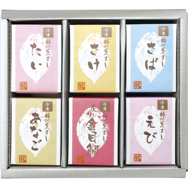 内容・容量 : 柿の葉すし(さば・さけ・たい・えび・あなご・炙り金目鯛)×各3