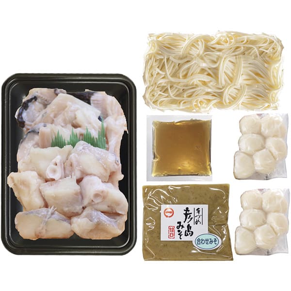 内容・容量 : あんこう400g、あんこうつみれ60g×2、冷凍うどん180g、彦島みそ200g、鍋だし55g