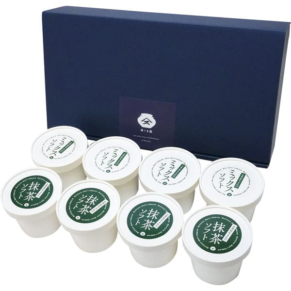 内容・容量 : 抹茶ソフトクリーム小豆入、ミックスソフトクリーム小豆入各100g×4、 計8個