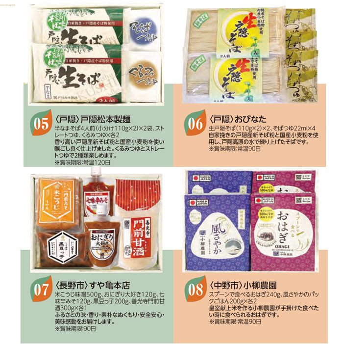 米こうじ味噌500g、おにぎり大好き120g、七味辛みそ120g、黒豆っ子200g、善光寺門前甘酒300g×各1