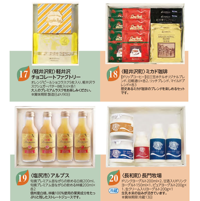 ながの東急百貨店オリジナル。信州の名産品・銘菓24種類から2品、先様に合わせてお選びください。