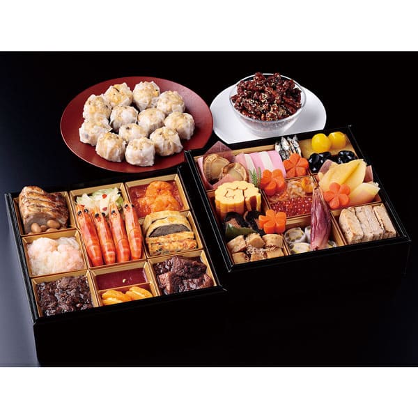 【令和8年おせち】〈崎陽軒〉和洋中おせち二段重(限定シウマイ・クルミの飴炊き付)(4人前/2段)