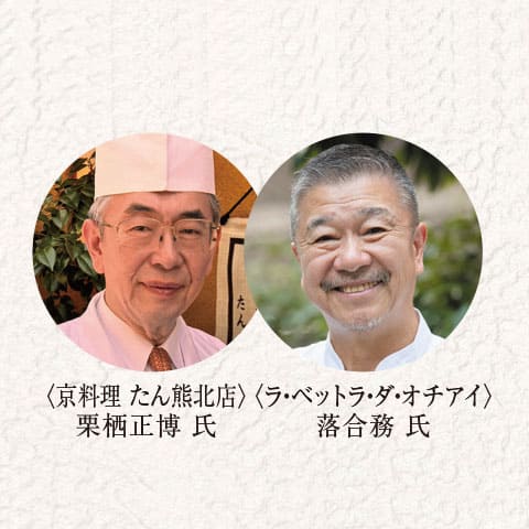京料理 たん熊北店の栗栖正博氏とラ・ベットラ・ダ・オチアイの落合務氏、京料理とイタリアンの巨匠による美味をお楽しみください