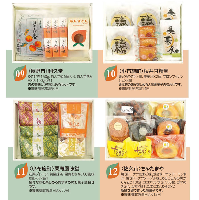 ながの東急百貨店オリジナル。信州の名産品・銘菓24種類から2品、先様に合わせてお選びください。