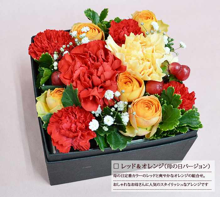 華やかなピンクのグラデーションカラーか母の日定番カラーのレッドとオレンジの組み合わせから選べます。